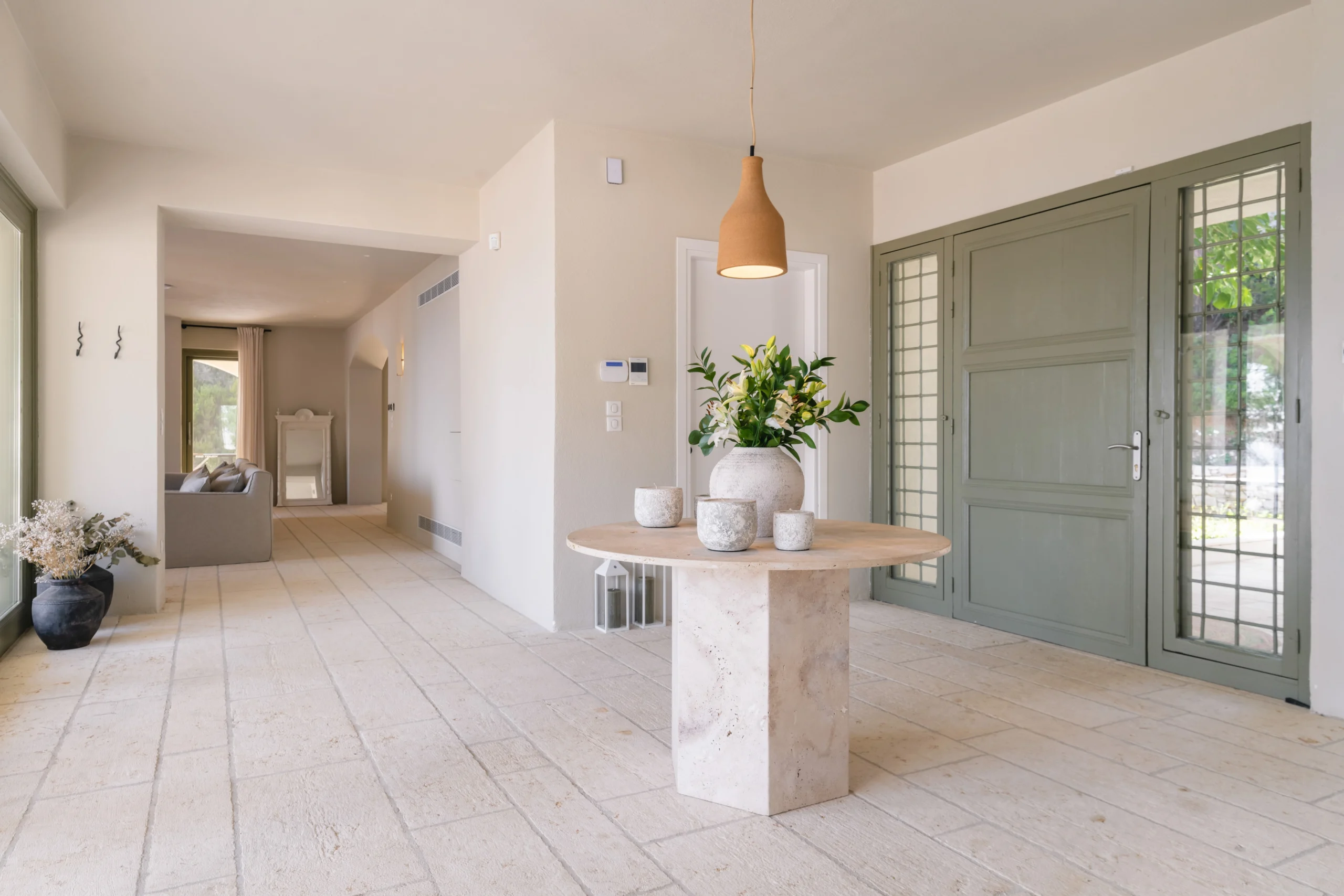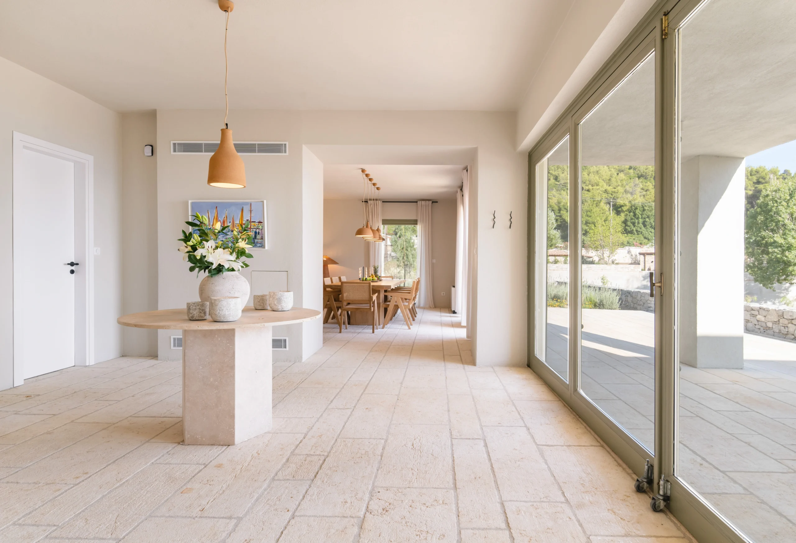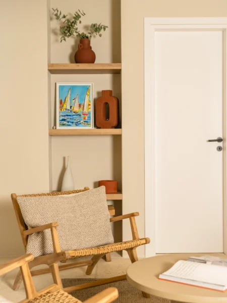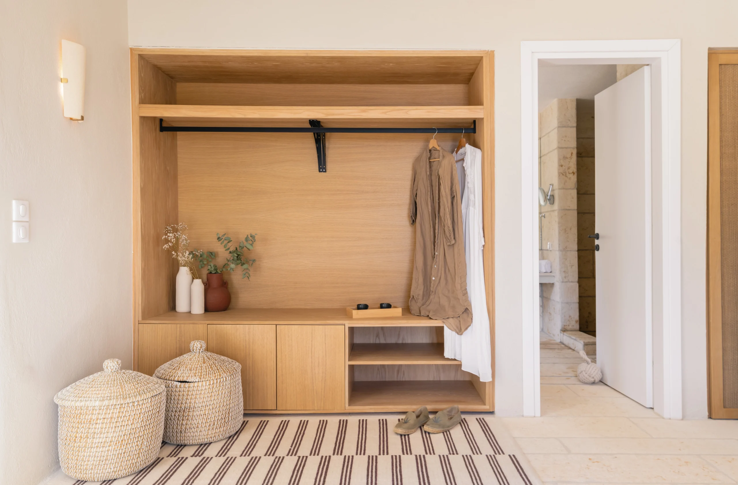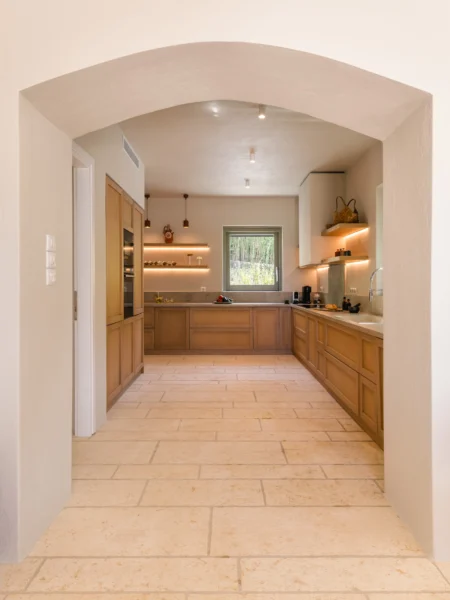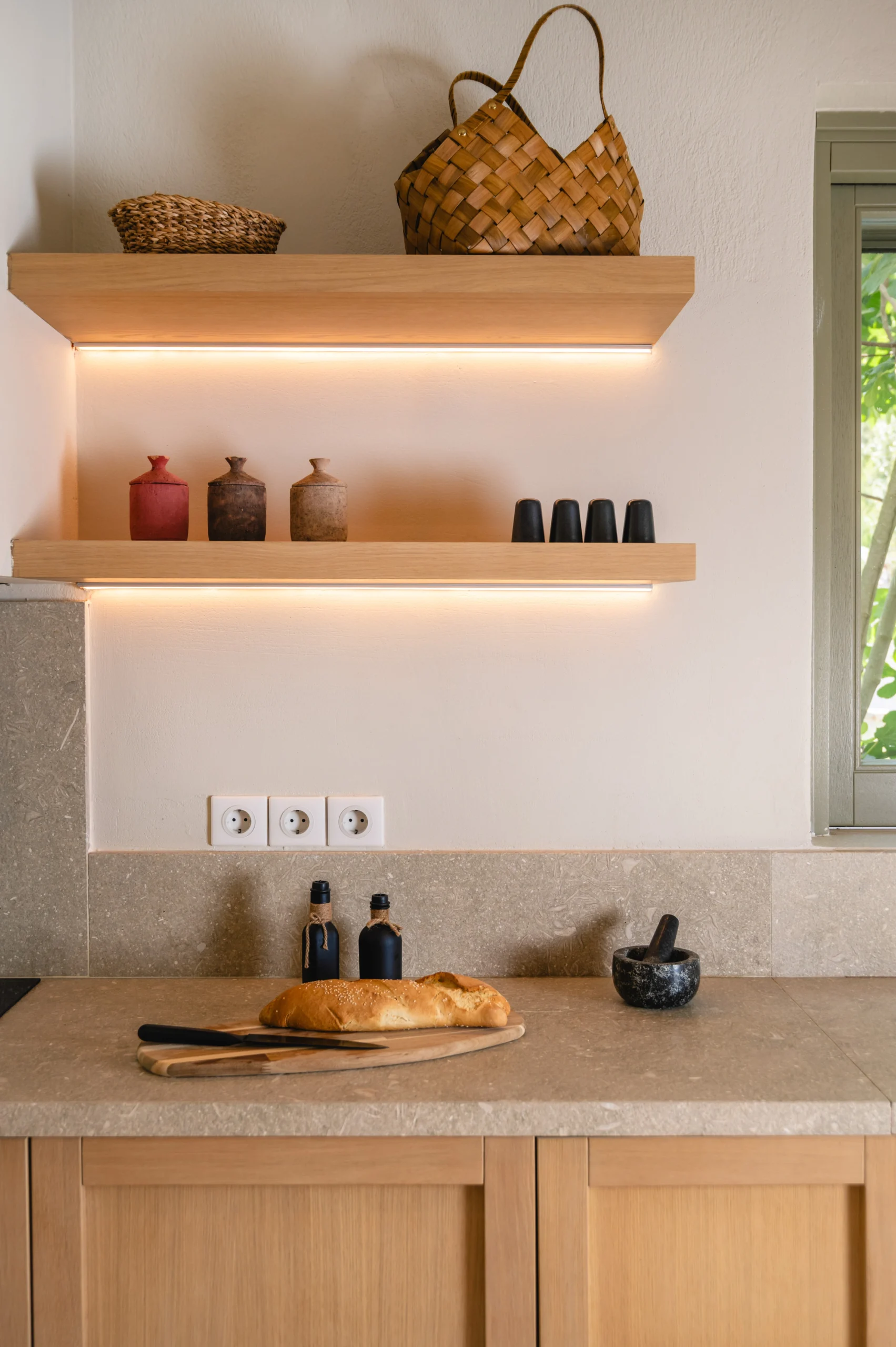 Crafted with smooth, organic lines and a palette of earthy tones, the villa blends seamlessly into its surroundings. Teak and iroko wood, natural stone, and linen textures create a tactile connection to the land. Every room opens to the infinite blue—where the view is a living painting, constantly shifting as sailboats, yachts, and fishing vessels glide across the horizon.
