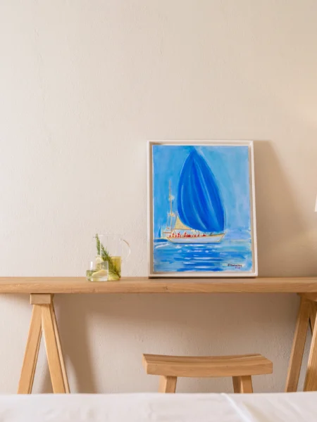 A living canvas—boats drifting across the horizon, the light shifting on the water, the infinite blue of the Aegean.